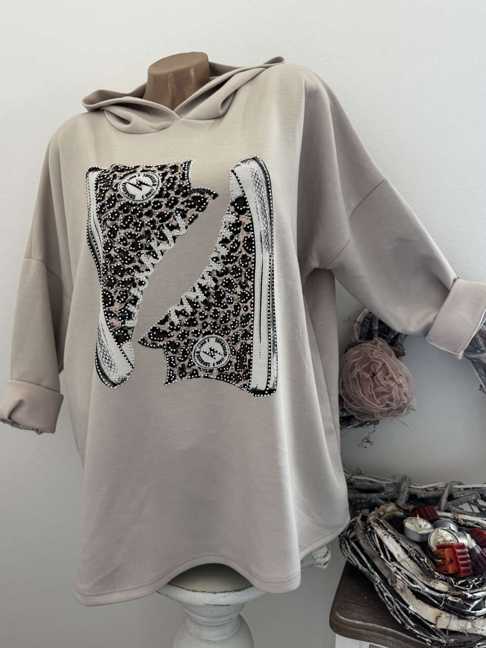 Unser Kommentar zu "Long Sweatshirt NEU Made in Italy 40-44 beige "Sneakers" Motiv Tunika Longsleeve"