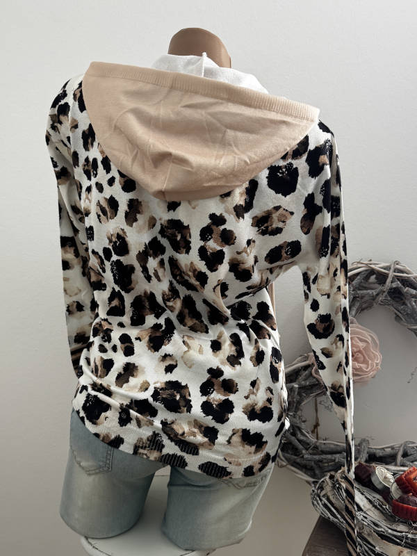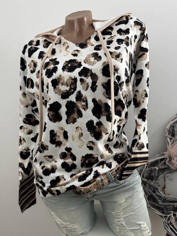 Pullover MISSY L/XL 40 42 Kapuzenpulli Hoodie Pulli Neu Feinstrick Leo beige