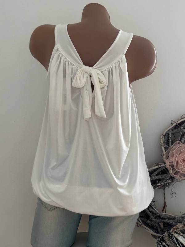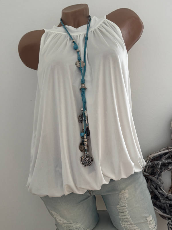 Top Tunika Neckholder 36-42 Ballonform Saumende Gummizug weiss hinten zum binden