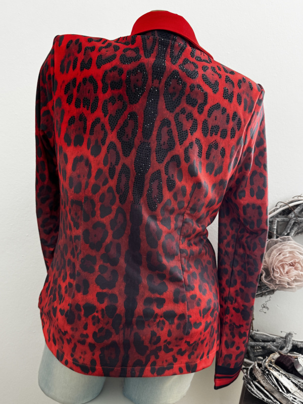 MISSY M 38 Trägertop Top Longtop Leo Animal rot/schwarz Glitzer Nieten Neu