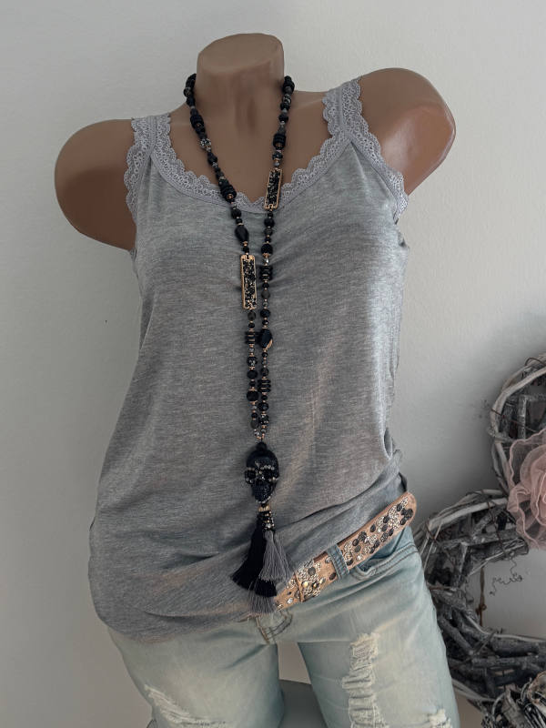 Top Trägertop Spitzenborde NEU grau 36-40 Made in Italy