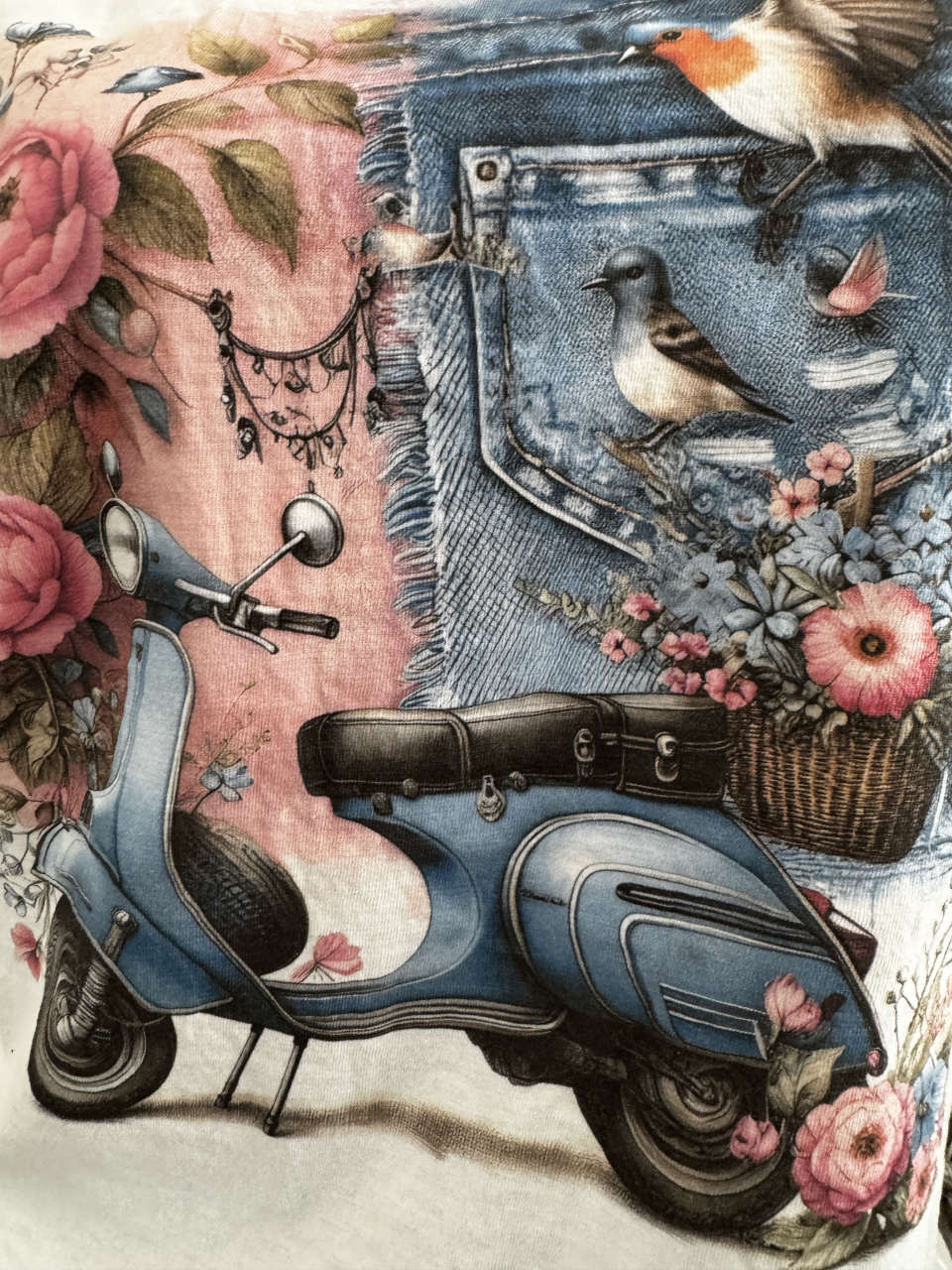 Produktinformationen "T-Shirt Shirt Scooter Vögel Blumen Frühling Sommer 36 38 40 42 Italy Nieten NEU weiss"