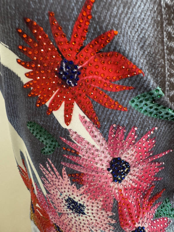 Unser Kommentar zu "MISSY XL 42 Trägertop Top Longtop Boho Peace Jeansoptik Print Glitzer Nieten Neu"